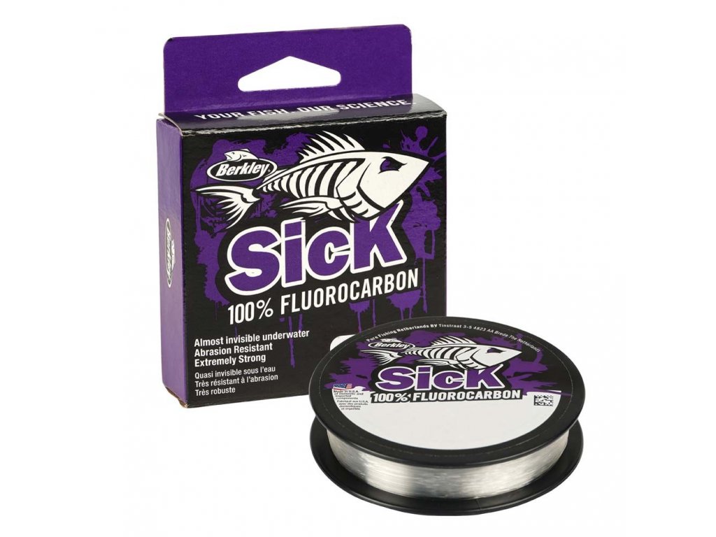Berkley Sick Fluorocarbon Leader je velmi pevný v uzlech a téměř vždy neviditelný pod vodou, což z něj dělá favorita na šokový předvaz při lovu štik, candátů, sumců nebo pstruhů.