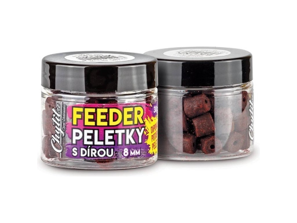 Chytací pelety 8 mm - silně dipované pelety s dírou. Na pelety skvěle reagují kaprovité ryby, jeseteři, cejni, parmy, plotice, podoustve, karasi atd. Doba rozpadu se pohybuje kolem 1 hodiny. Perfektní nástraha na method feeder. Tento produkt je "pokračovatelem" našich tradičních chytacích pelet v balení 250 g. Nový menší průměr 8 mm využijí hlavně milovníci chytání na feeder.