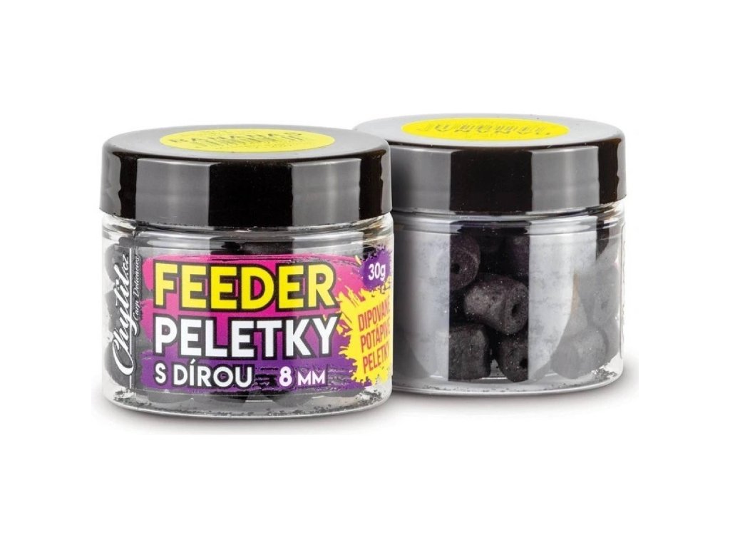 Chytací pelety 8 mm - silně dipované pelety s dírou. Na pelety skvěle reagují kaprovité ryby, jeseteři, cejni, parmy, plotice, podoustve, karasi atd. Doba rozpadu se pohybuje kolem 1 hodiny. Perfektní nástraha na method feeder. Tento produkt je "pokračovatelem" našich tradičních chytacích pelet v balení 250 g. Nový menší průměr 8 mm využijí hlavně milovníci chytání na feeder.