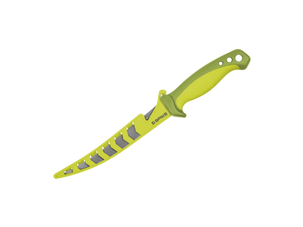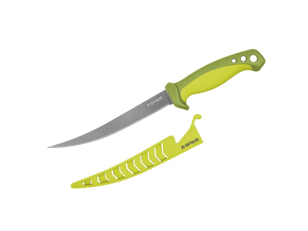 Delphin SPIKE je filetovací nůž vyznačující se výbornými vlastnostmi a velmi příznivou pořizovací cenou. Jeho ostrá čepel je vyrobena z kvalitní nerezové oceli a ideálně poslouží při zpracování masa, ale i jiných surovin potřebných pro přípravu pokrmů. Nůž disponuje ergonomicky tvarovanou rukojetí z tvrzeného ABS plastu. Celá rukojeť je navíc opatřena gumovým protiskluzovým povrchem, díky čemuž výborně sedí v každé dlani. Na konci rukojeti se nacházejí tři otvory, které vytvářejí zajímavý designový prvek, ale také mohou sloužit například k zavěšení nože. SPIKE je dodáván spolu ochranným plastovým pouzdrem na čepeli. Technické parametry: Délka nože: 29cm Délka čepele: 16,5cm