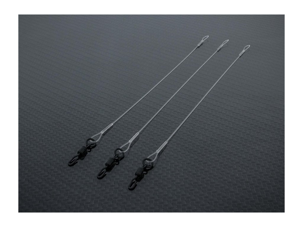 Dokonale vyhotovená montáž z 30lb fluorokarbonu se smyčkou na obou koncích, přičemž jeden konec obsahuje mikro rychlovýměnný obratlík Spinner velikosti 11 s kroužkem pro uchycení háčku.