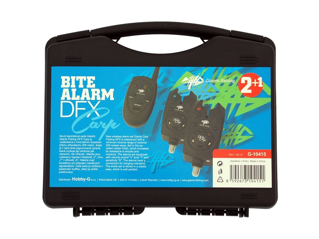 Nová bezdrátová sada hlásičů Giants Fishing DFX Carp je voděodolná s minimálním dosahem příjmu příposlechu 200 metrů.