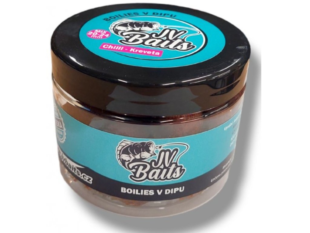 JV Baits boilies v dipu chilli-kreveta 500ml mix 20/24mm