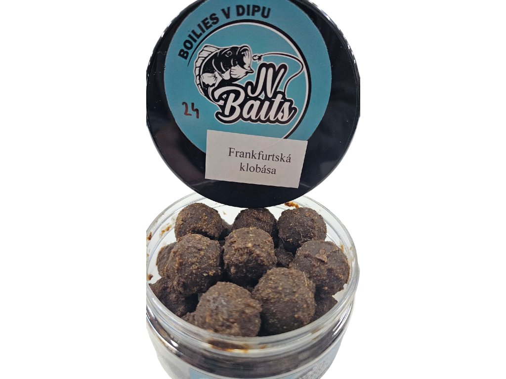 JV Baits Dipované boilies Frankfurtská klobása 24 mm 300 ml