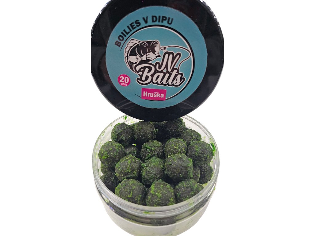 JV Baits Dipované boilies Hruška 20 mm 300 ml