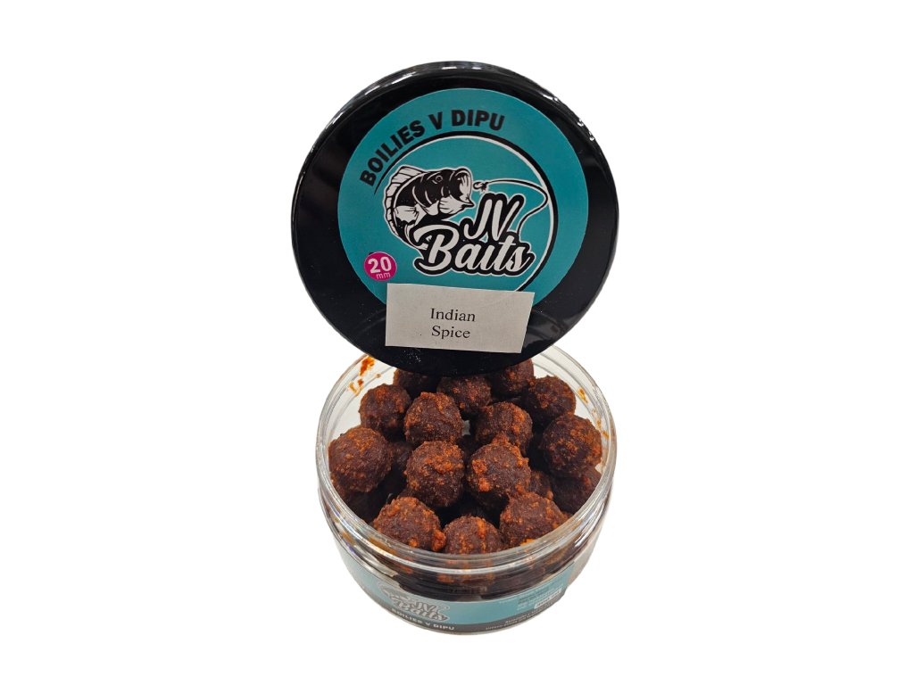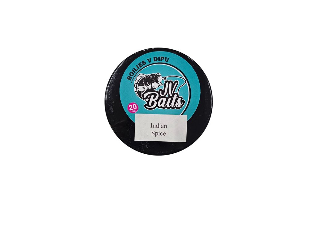 JV Baits Dipované boilies Indian Spice 20 mm 300 ml