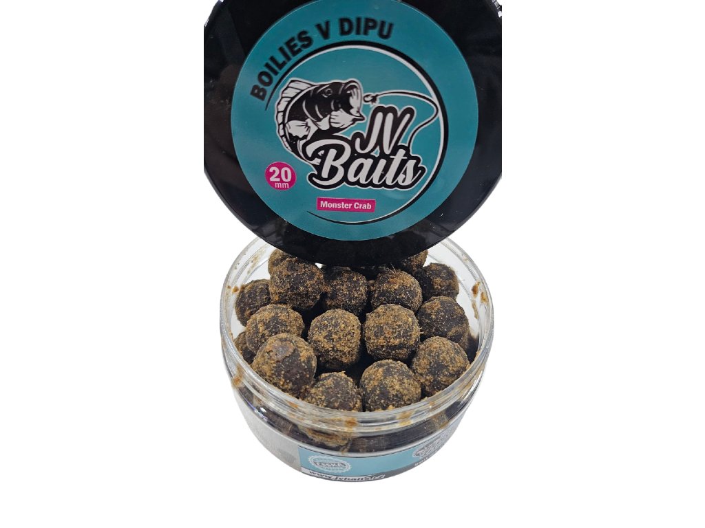 JV Baits Dipované boilies Monster Crab 20 mm 300 ml