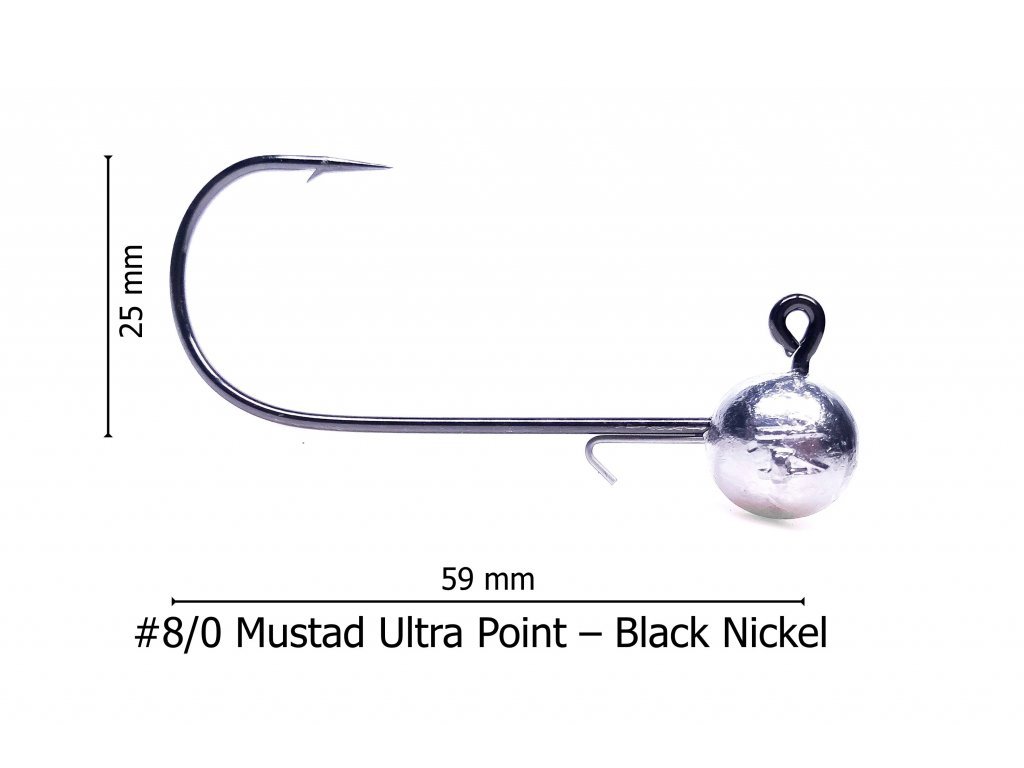 Série jigových hlaviček Round patří bezesporu k těm nejlepším na českém trhu. Váhově přesný odlitek je osazený skvělým háčkem a doplněný o tzv. "lure holder" (držák, který fixuje nástrahu na stejném místě a šetří tak její životnost v průběhu rybolovu). Vysoce kvalitní háček Mustad Ultra Point 32746NP Black Nickel je dostatečně otevřený a opatřen chemicky broušeným hrotem a protihrotem technologie 4.3 UltraPoint.
