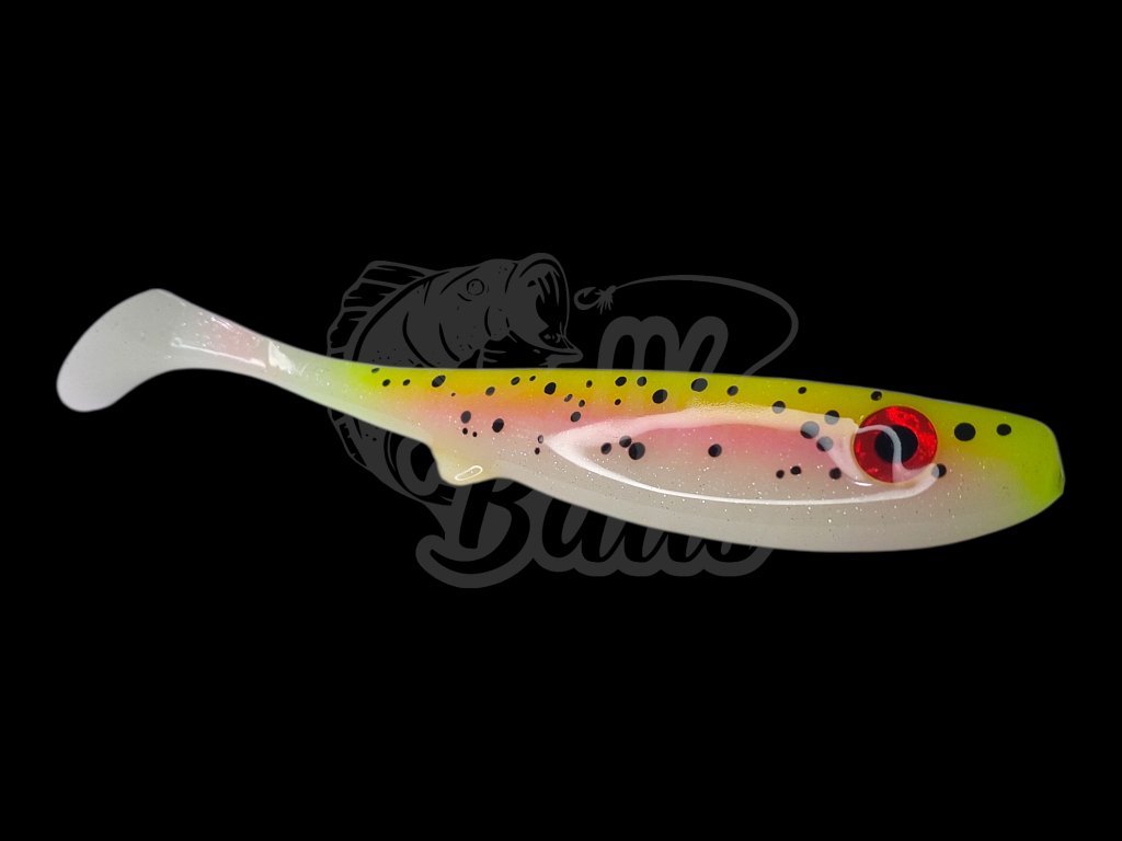 Vyrobený z MĚKKÉHO materiálu pro nejlepší možnou prezentaci. I velmi pomalé tažení či propad s lehkou jigovkou okamžitě rozkmitá ocásek. Díky poddajnému materiálu dravec při útoku ihned nevycítí zradu a je schopen nástrahu podržet o okamžik déle. Zároveň měkký ocásek nepřekáží rybě při nasátí nástrahy. Z toho vyplývá větší úspěšnost záseků a více zdolaných ryb. A o to nám všem přeci jde :D.