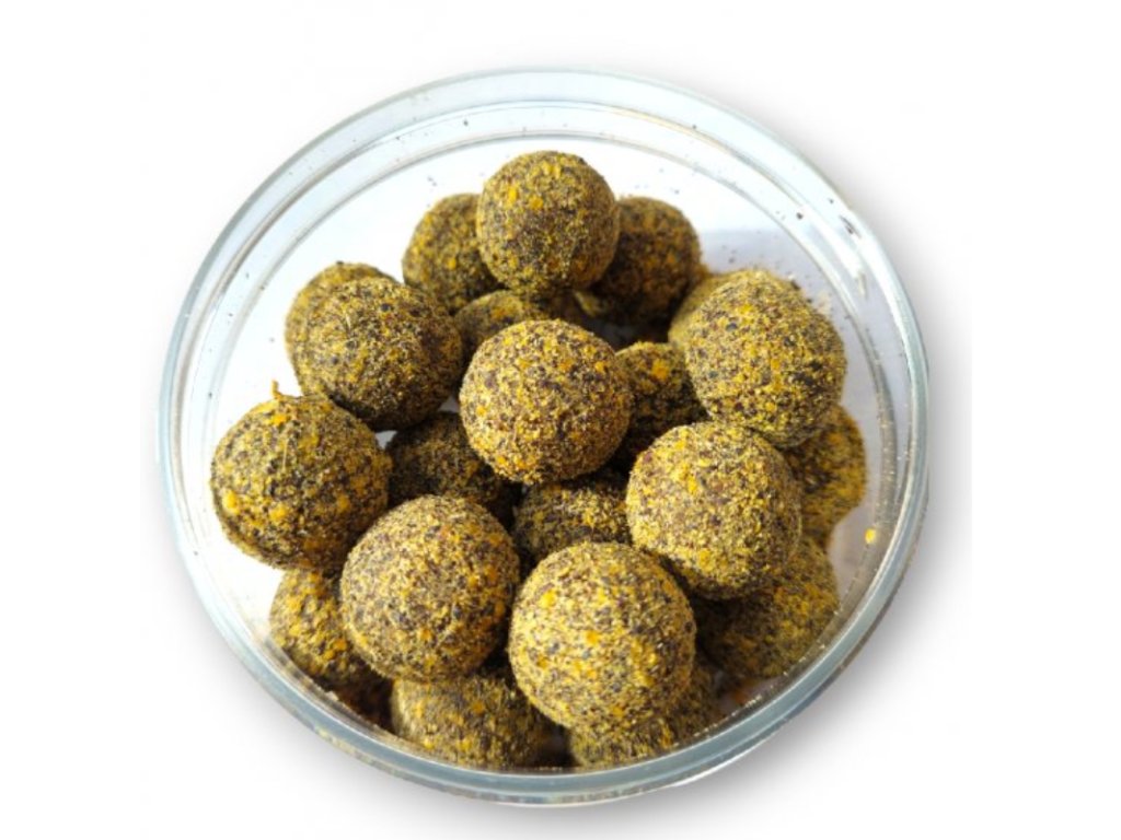 Chytací rozpustné krillové boilies s vysokým podílem kvalitně upravené řepky a směsi tekutých potrav z naší malovýroby je ideální pro celoroční použití a vhodné pro závodní účely. Dlouhé testování ukázalo sílu této kuličky při krmných kampaních s partiklem a díky svému unikátnímu složení dokáže aktivně pracovat i v té nejstudenější vodě.