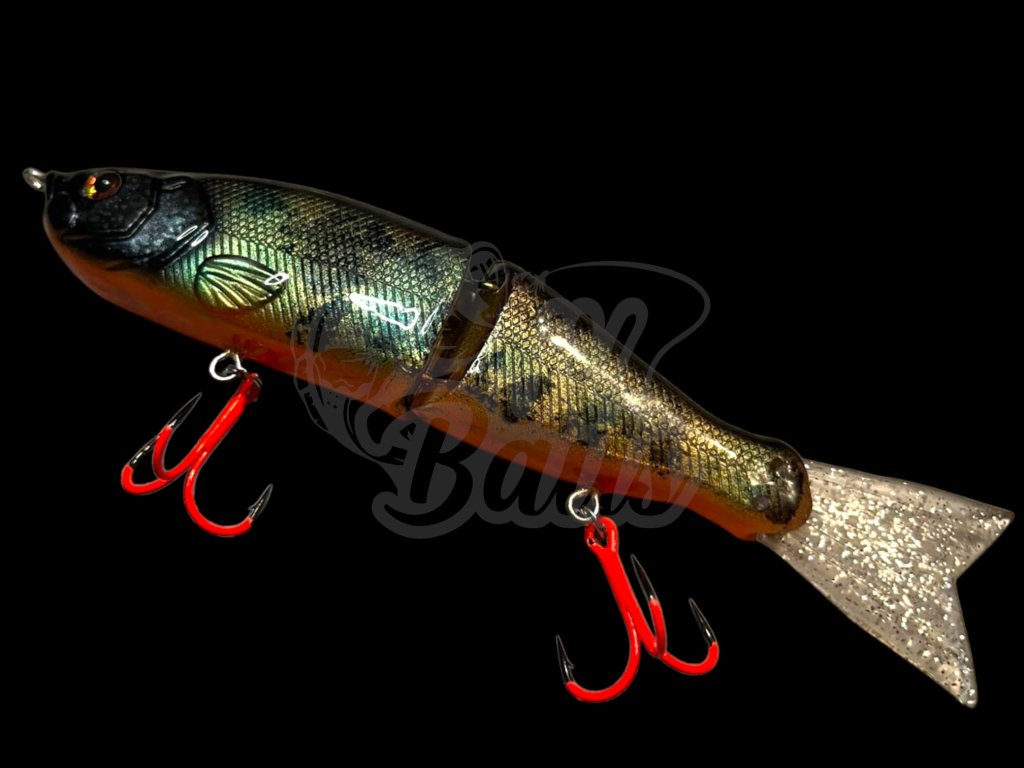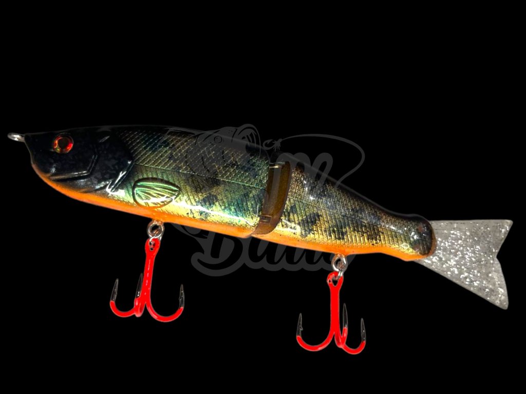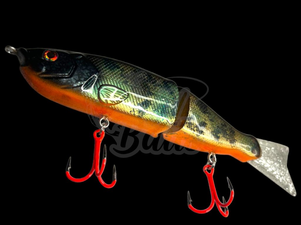 Potápivý Glide Bait 168 se silikonovým ocasem. Sahá do povrchu až do hloubky přibližně 50 cm. Obsahuje pěknou akci Glide.