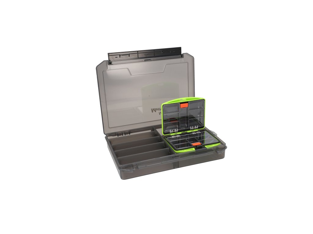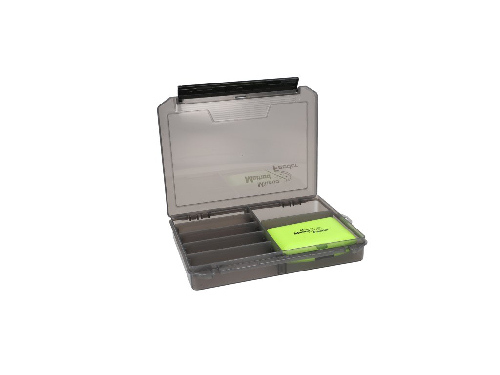 Vysoce jakostní box s velkou západkou, věnovaný technice method feeder. Navrženo pro umístění krmítek, formy a základního nádobíčka. Dodává se s menší krabičkou na veškeré drobné příslušenství - spojovací materiál, zarážky nebo náhradní gumičky.