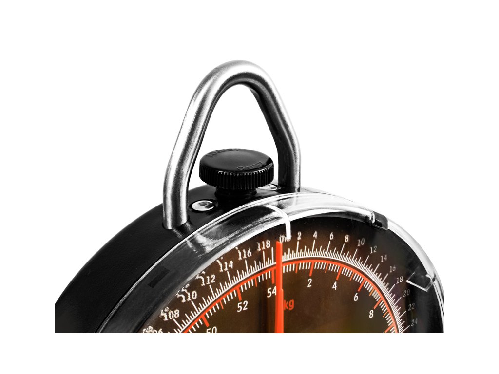 Robustní mechanická váha určená pro vážení těch největších úlovků. Masivní konstrukce váhy JUMBO umožňuje změření hmotnosti až do 54 kg s minimální odchylkou. Naměřená hodnota se za pomoci ručičky zobrazuje na velkém ciferníku ve dvou různých jednotkách - kilogramech a librách. Zvedání během vážení usnadňuje velmi pevný kovový držák. Díky svým parametrům si váha Delphin JUMBO najde uplatnění kromě rybolovu i při myslivosti či v jiných sférách běžného života. Technické parametry: Výška (tělo váhy): 17cm Výška (s rukojetí a hákem): 30cm Šířka: 17,5cm Kapacita váhy: 54kg Hmotnost: 790g