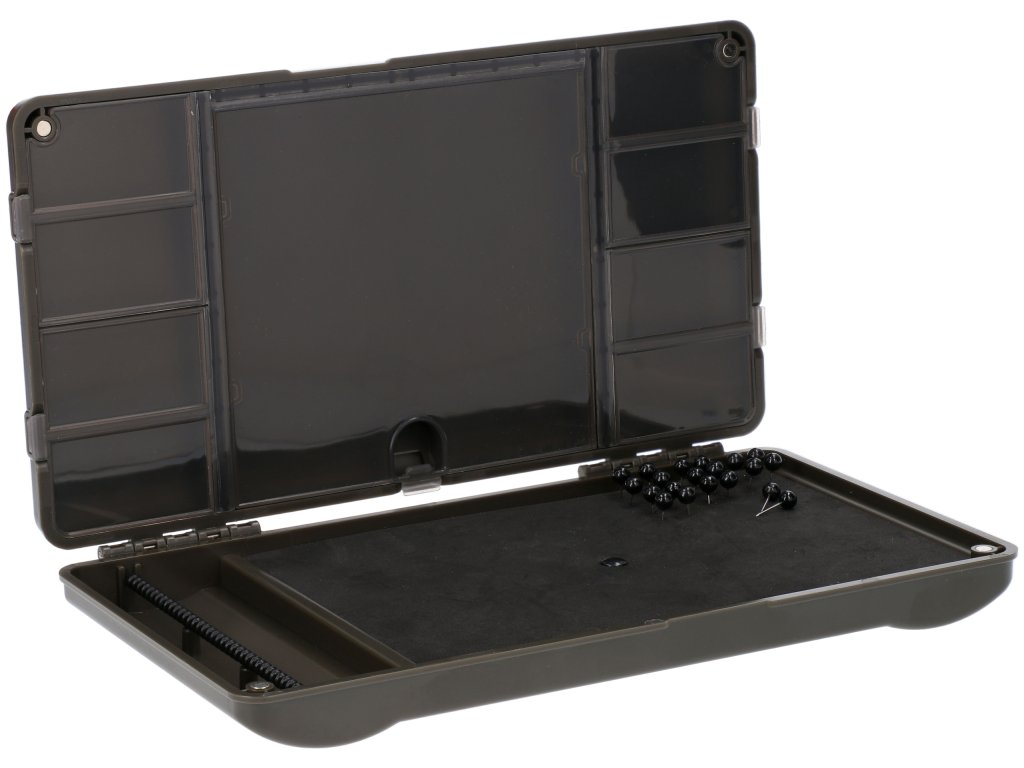 Se systémem přihrádek s magnety pro příslušenství a také s pěnou se špendlíky, pro transport hotových návazců.