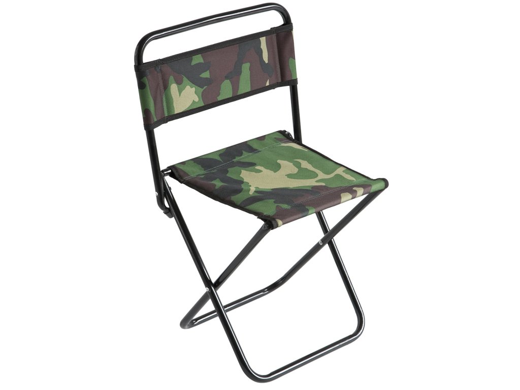 Kompaktní skládací stolička s opěrkou v maskovaném provedení