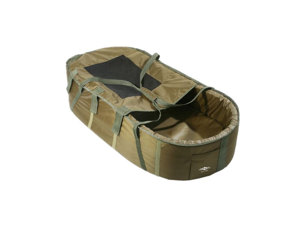 Profesionální kaprová podložka typu vanička s vysokými, měkkými a silnými stěnami, odtoky vody a vyjímatelnými matracemi pro snadný transport.