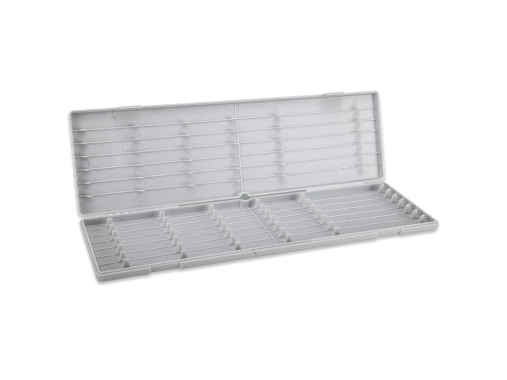 Praktické, tvrdé pouzdro pro skladování a přepravu návazců. Tato verze je určena pro návazce v délce 30 cm. Box má přepážky pro přesné uložení návazců v délce 10; 15; 20; 25 a 30 cm. Do krabičky se vejde až 100 návazců!