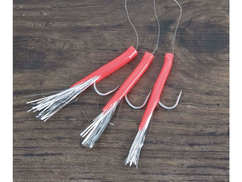 Systém pro velké tresky obecné a tresky tmavé, se třemi ocelovými háčky, červenými bužírkami a stříbrnými střapci. Zajistí vám úlovek i ve chvílích, kdy všechny ostatní nástrahy ryby ignorují. Součástí balení je EVA Board - pěnová deska na návazce.