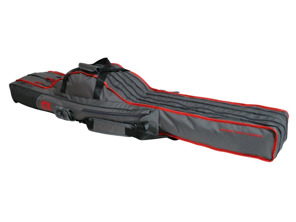 Praktický a prostorný obal na pruty vybavený 3 velkými komorami, do kterých se snadno vejdou sady prutů, spolu s navijáky. Další boční kapsy se budou hodit k přepravě např. deštníku nebo vidliček.