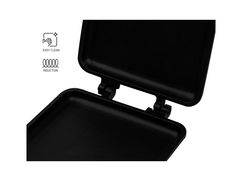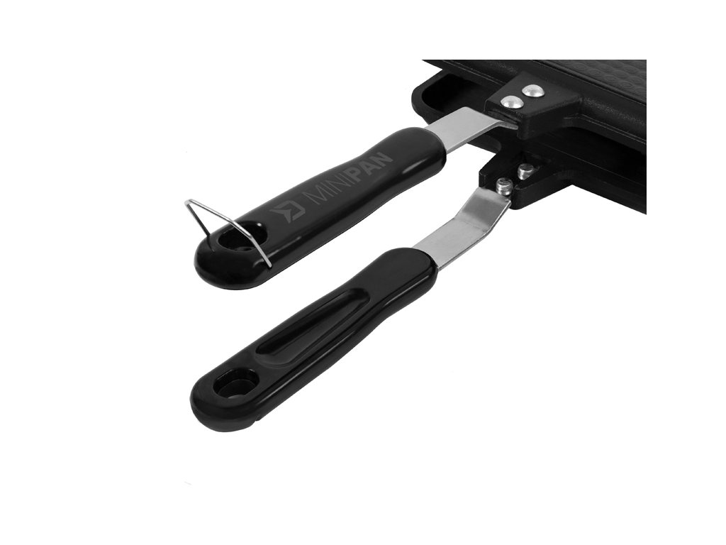 Kompaktní oboustranná pánev, která vám umožní připravit chutné pokrmy kdekoli v přírodě. Díky své velikosti je ideální pro přípravu rychlých snídaňových pokrmů jako jsou toasty nebo vejce. Základ pánve tvoří hliník s nepřilnavým povrchem, který maximálně omezuje připalování při vaření, grilování nebo opékání. Kromě toho je tento povrch velmi snadno omyvatelný a odolný proti mechanickému poškození. Zdaleka největší výhodou uzavřené pánve je skutečnost, že se v ní teplo mnohem rychleji akumuluje a během vaření z ní neuniká. Příprava pokrmů pod širým nebem je tak mnohem rychlejší a jednodušší. Manipulaci s nádobou MiniPAN usnadňují žáruvzdorné rukojeti, které lze jednoduchým systémem uzamknout, aby se během vaření nebo otáčení svévolně neotevíraly. Velkou výhodou je také možnost oddělit jednotlivé poloviny, což výrazně usnadňuje mytí nebo přípravu dvou pokrmů najednou.