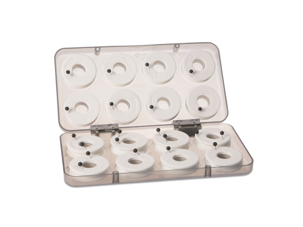 Plastové boxy s cívkami pro navíjení návazců. Cívky jssou z EVA materiálu a opatřeny špendlíky pro zajištění háčků. Boxy jsou přizpůsobení počtu cívek a jsou zajištěny magnetickým uzávěrem.