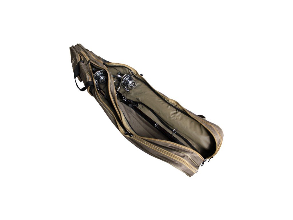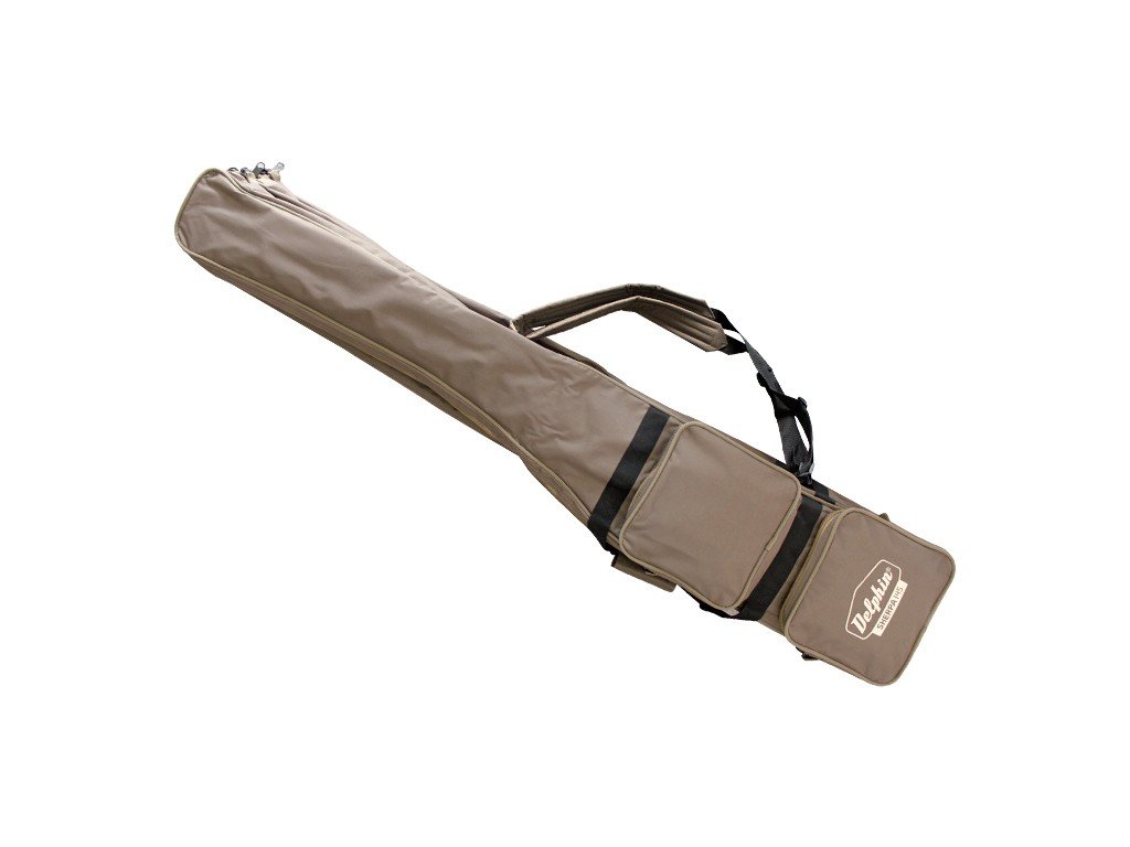 Obsahuje i třetí, tzv. poloviční komoru, která také pojme například teleskopický prut, ale bez navijáku. Tato třetí komora uskladní i různé jiné rybářské příslušenství. Jednotlivé komory jsou samozřejmě odděleny přepážkami. Na boční straně se nacházejí dvě kapsy (25x22x4cm), do kterých je možné uložit krabice s bižuterií, brýle, čelovky, kleště, signalizátory a kopec jiného příslušenství. Druhá strana pouzdra obsahuje extra dlouhou kapsu se zipem, která slouží například pro transport rybářského podběráku. Na něm jsou našita uložení na vidličky i se stahovací páskou. Toto pouzdro tak pojme většinu těžko skladného rybářského náčiní. Technické parametry: Model: DELPHIN Sherpa 100 Celkové rozměry pouzdra: 105x25x24cm Délka boční kapsy: 90cm Pouzdro pro 2 teleskopické pruty s navijáky + 1 samostatný prut nebo jiné rybářské příslušenství. Model: DELPHIN Sherpa 130 Celkové rozměry pouzdra: 135x25x24cm Délka boční kapsy: 120cm Pouzdro pro 2 pruty o délce 360/3díl s navijáky + 1 samostatný prut nebo jiné rybářské příslušenství. Model: DELPHIN Sherpa 145 Celkové rozměry pouzdra: 145x25x24cm Délka boční kapsy: 135cm Pouzdro pro 2 pruty o délce 390/3díl s navijáky + 1 samostatný prut, nebo jiné rybářské příslušenství.