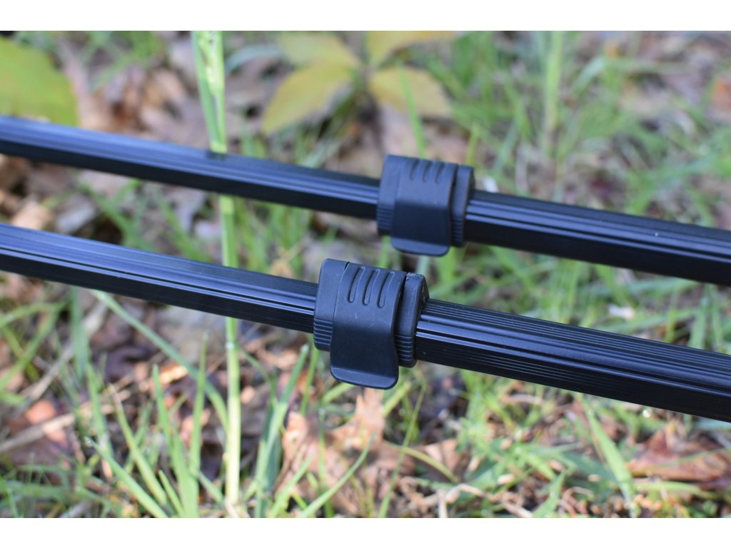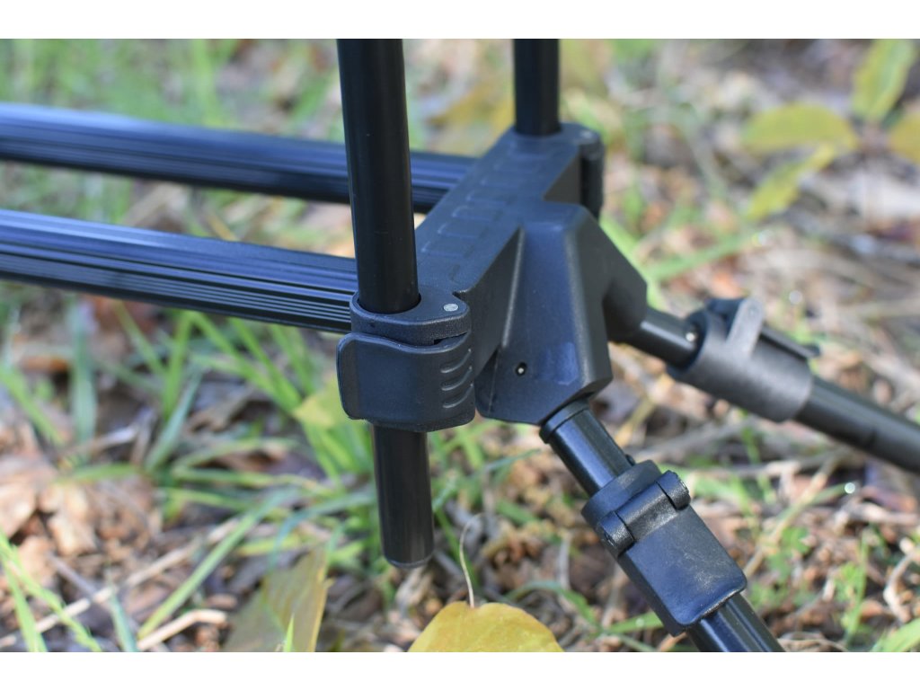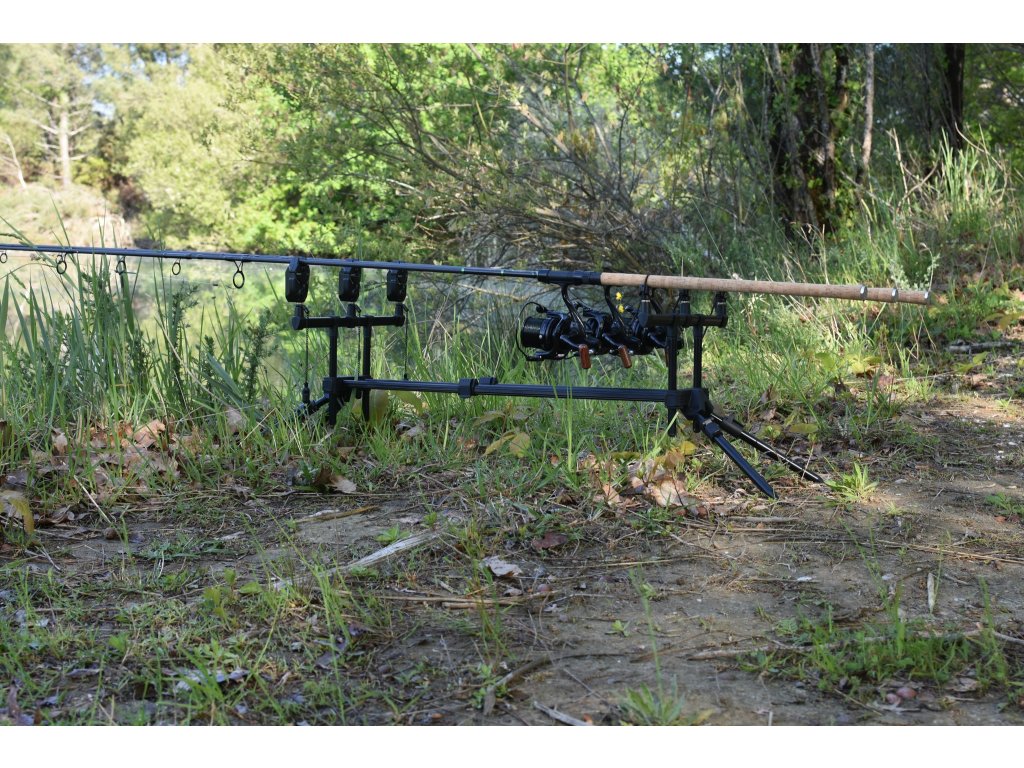 Scorpium Dual je k dispozici pro tři pruty a je velmi skladný, co se týče přepravy. Dodáván včetně textilního pouzdra, které je navíc opatřeno madlem pro snadné přenášení. Celková délka přepravního pouzdra je pouhých 58 cm. Specifikace: - hliníkové tělo - celková délka: 80 cm - minimální délka: 46 cm - minimální výška: 27 cm - maximální výška bez hrazd: 37 cm - maximální výška s hrazdami: 58 cm - délka hrazdy: 40 cm - barva: černá - včetně přepravního textilního pouzdra - 1x stojan - 2x hrazda - 4x tyč na hrazdy - 1x přepravní pouzdroDoplňkové parametry