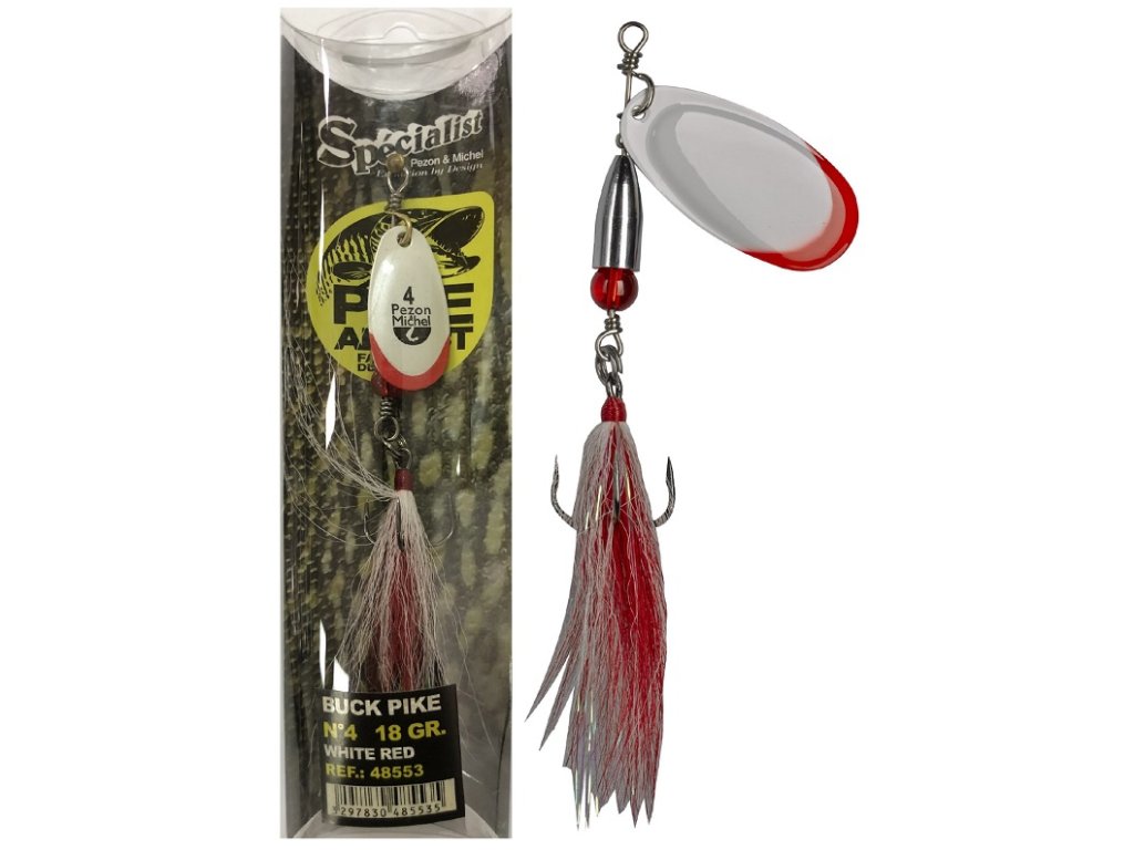 Rotačka speciálně vyvinutá pro lov velkých štik. Pracuje výborně i při velmi pomalém tažení. Díky její váze se s ní výborně nahazuje. Střapec chmýří na trojháčku přidává rotačce extra dráždivý pohyb. Tělo rotačky je vyrobeno z pevného 1,2 mm silného nerezového drátu a osazené pevným a super ostrým trojháčkem pro maximální spolehlivost.