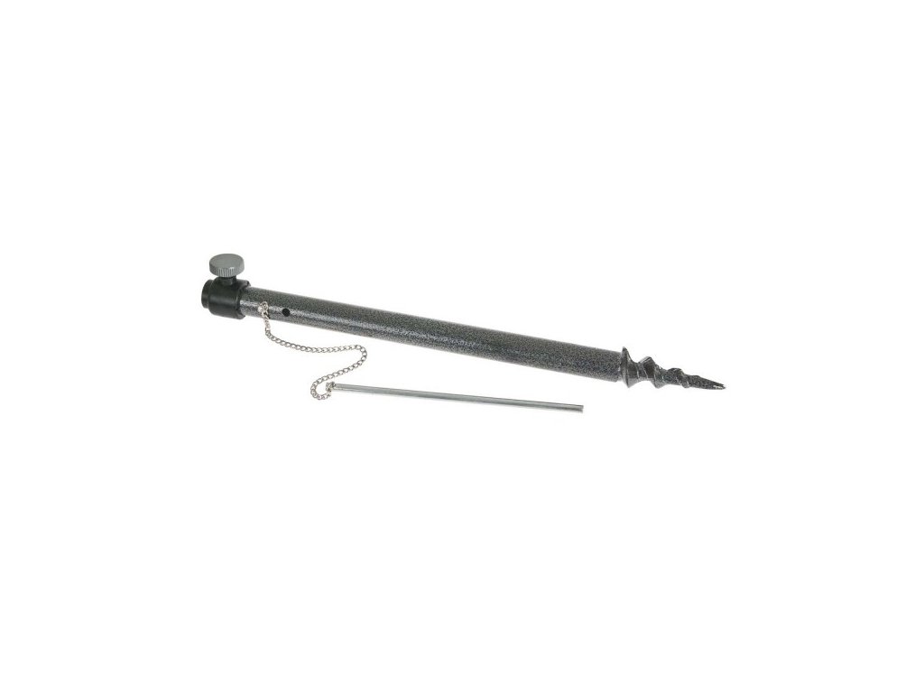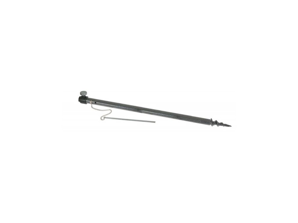 Zavrtávací noha pro zachycení deštníku. Noha se snadno zavrtá do země, potom stačí jen vložit deštník a zajistit aretačním šroubem. Pomocná tyčka na vrtání je připevněna řetízkem, aby nedošlo ke ztrátě. Jednoduchý, ale geniální nástroj. Velikost 60 cm.
