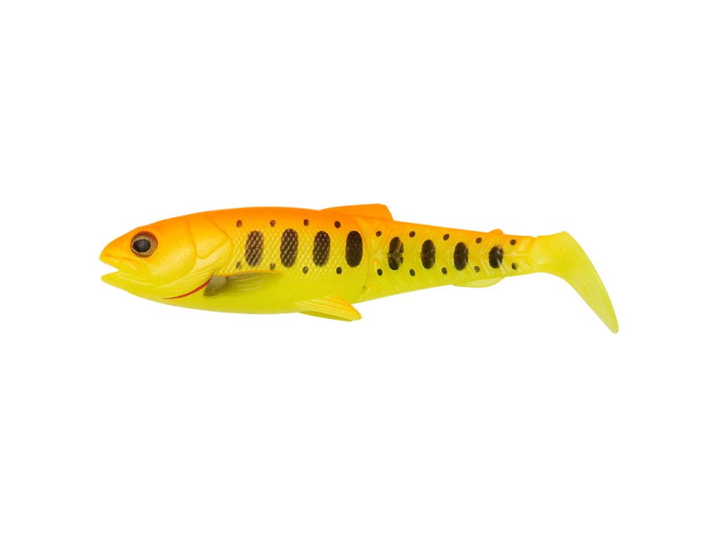 Jejich tvar je inspirován skutečnými malými pstruhy, s klasicky kanibalsky otevřenou tlamkou, velkýma realistickýma měkkýma očima a novým unikátním designem ocasního můstku, díky kterému nástraha plave úžasně živou akcí i při velmi nízkých rychlostech. Nástraha plave stejně dobře při stahování i při propadu. Její ručně malované detaily stanovují nové standardy ve výrobě gumových nástrah. Tato nástraha s lopatkovitým ocasem chytí snad každého dravce v okolí!