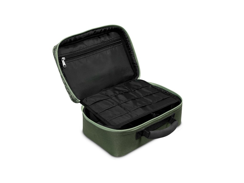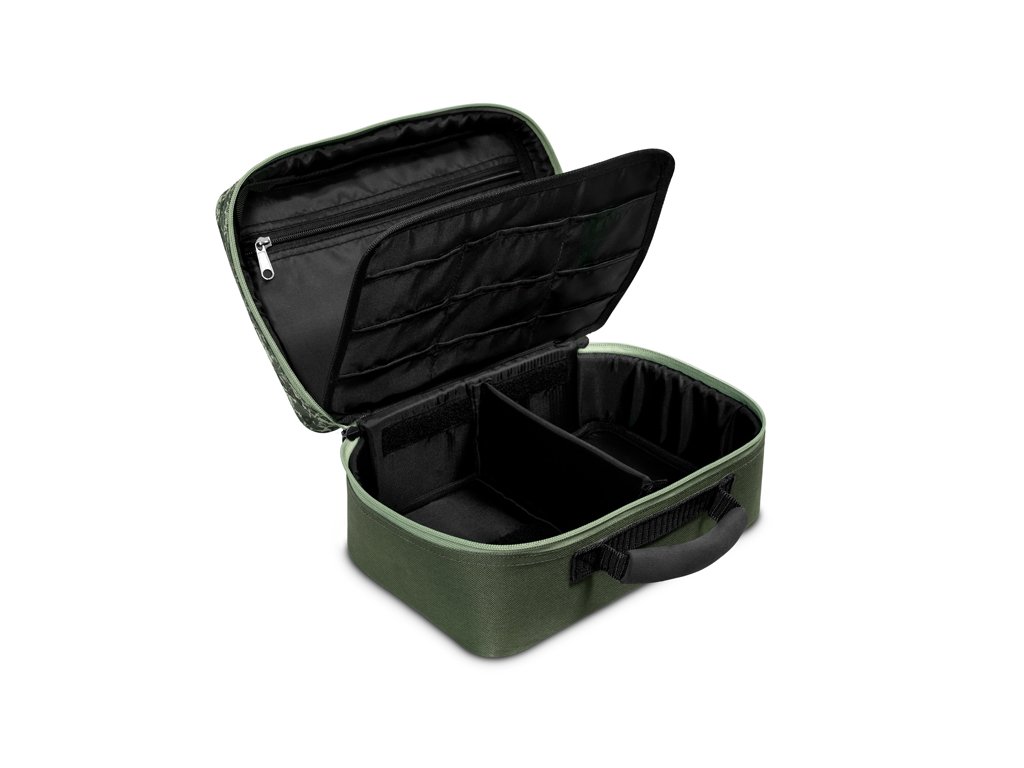 Delphin TACKLE SPACE je praktická polstrovaná taška ve stylovém C2G provedení, určená především pro odkládání a přenos rybářské bižuterie. Hlavní úložný prostor je rozdělen vyjímatelnou polstrovanou přepážkou na suchý zip, pomocí které si jej můžete přizpůsobit dle vlastních požadavků. Je možné zde uložit krabičky s bižuterií, olůvka, návazcové šňůrky a vše ostatní potřebné k přípravě vašich koncových sestav.