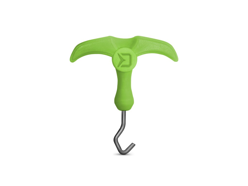 Delphin KNOTER je chytrý pomocník, který zaručí, že uzly na vašich montážích budou utaženy vždy na 120%. Část sloužící k uchopení je do detailů navržena a ergonomicky tvarována tak, aby vždy perfektně sedla mezi prsty. Tento tvar usnadňuje nejen uchopení, ale také samotné dotahování. Kromě toho se vyznačuje výraznou zelenou barvou, díky čemuž se KNOTER neztratí mezi ostatními prvky vaší výbavy. Kovová část je vyrobena ze silného a extra pevného drátu. Během dotahování se tak nemusíte bát použít opravdu velkou sílu.